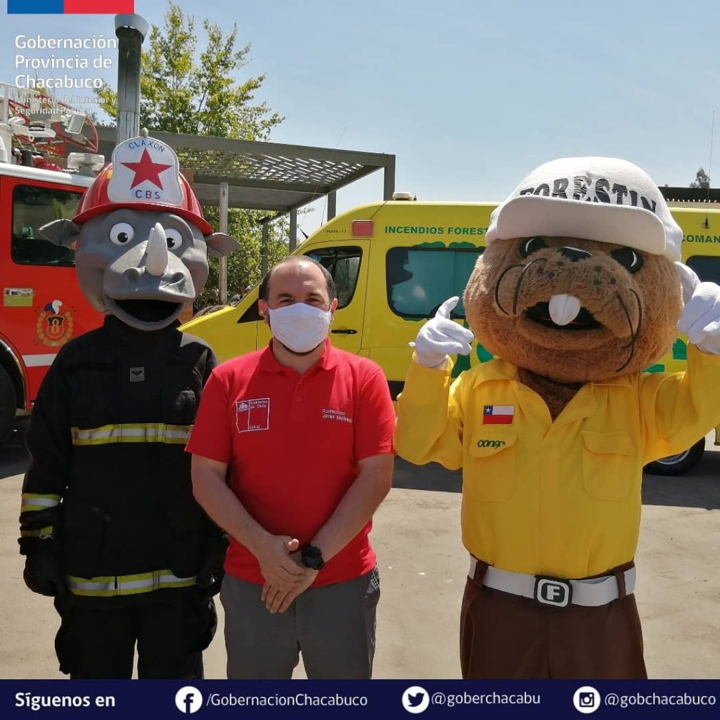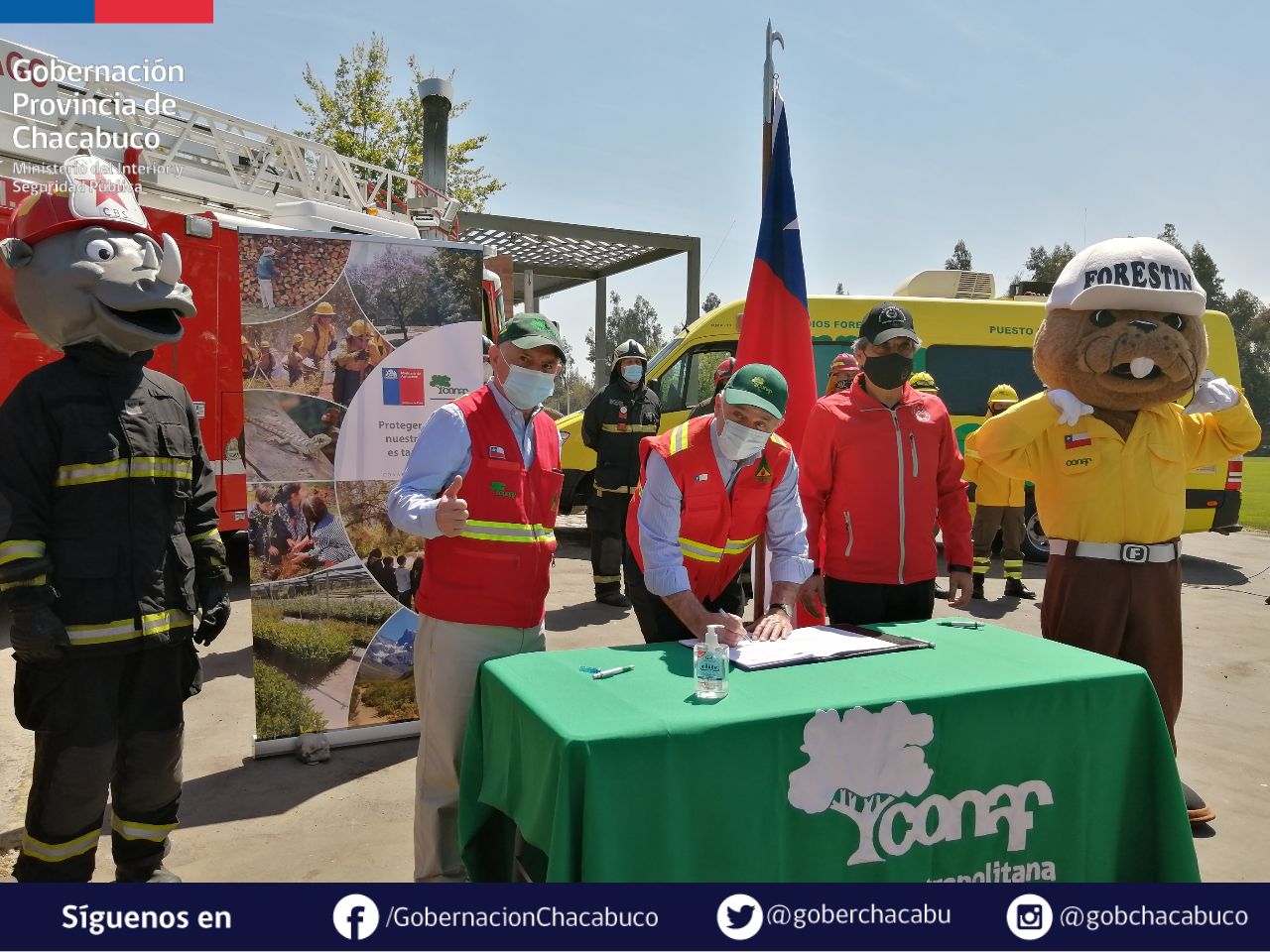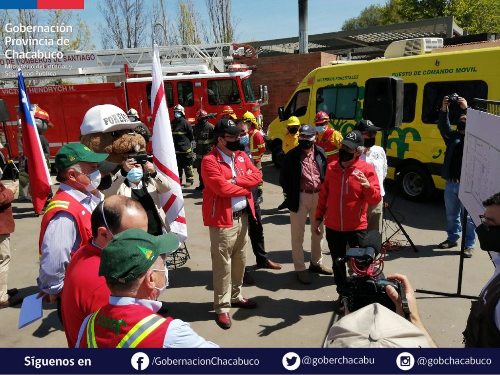 El ministro Antonio Walker, junto al superintendente de Bomberos de Colina y el director regional de Conaf, firmaron un acuerdo de cooperación con el que se da inicio a la temporada de incendios 20-21.